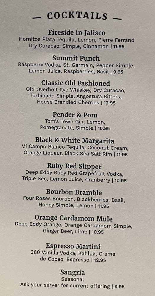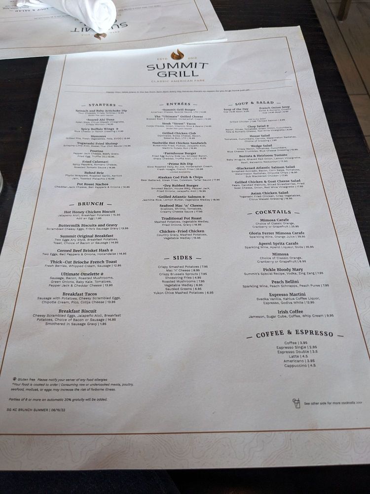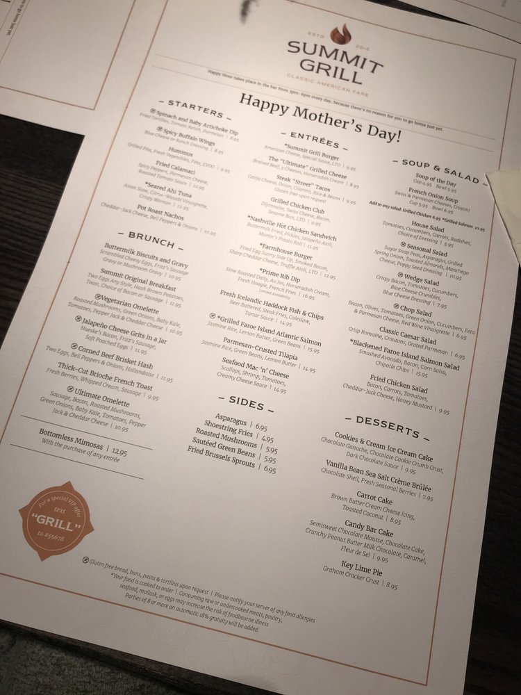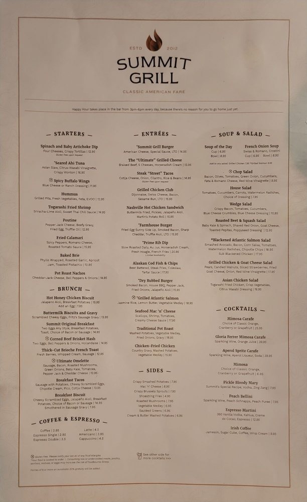 Summit Grill Menu